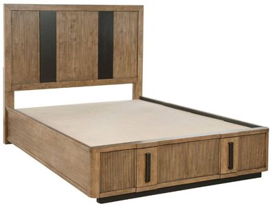 Sleek vertical embellishments create incredible texture and depth for a modern wooden storage bed. A pair of drawers are tucked in the footboard, which creates an open, airy profile with its low silhouette. The bed is anchored with a tall headboard, complete with mitered corners for sharp precision.Read More