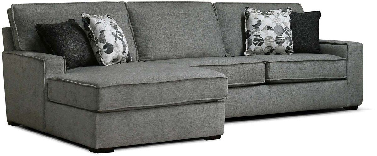 Our Lyndon sectional is sure to make a statement! This over scaled casual silhouette features a flange welt, thick seat and back cushion, and unbeatable comfort. Pair the sectional with the matching chair for a total room makeover. Available in your choice of over 400 fabrics.Read More