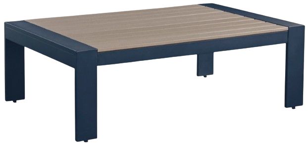 Easy-breezy beauty, Easy-breezy beauty, made to withstand the elements. This outdoor coffee table makes a serene statement on your deck or patio with its soothing shade of blue and contrasting wood-look top. And with durable materials providing added longevity, this table is a smartly-stylish addition to your outdoor oasis.Read More