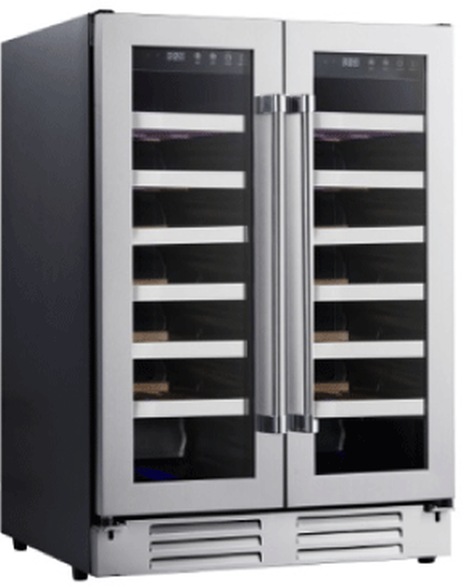 Vitara 24" Stainless Steel Built In Wine Cooler has Built-in or free standing installation, Temperature range 39-68 F degree for each zone, and Premium Electronic control look with blue LED Readout.Read More